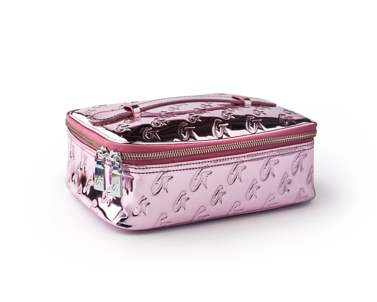 This lustrous cosmetic carrier crafted of metallic vegan leather is equal parts fun and function. Flatly lay medium-sized products and stack beauty compacts in its wide interior compartment, equipped with a zip pocket for discreet items. Features a top handle for easy transport and slips right into any of our luggage pieces.