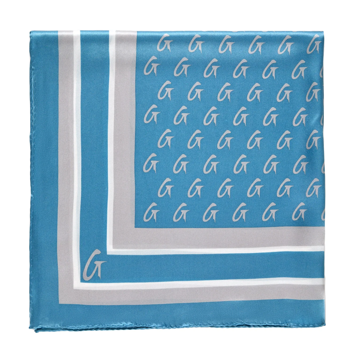 MEDIUM MONOGRAM SILK SCARF - BLUE SILVER